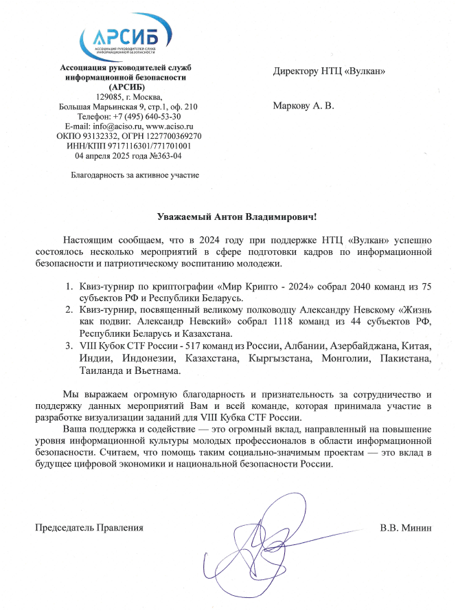 Благодарственное письмо АНО ДПО "Техническая академия Росатома"